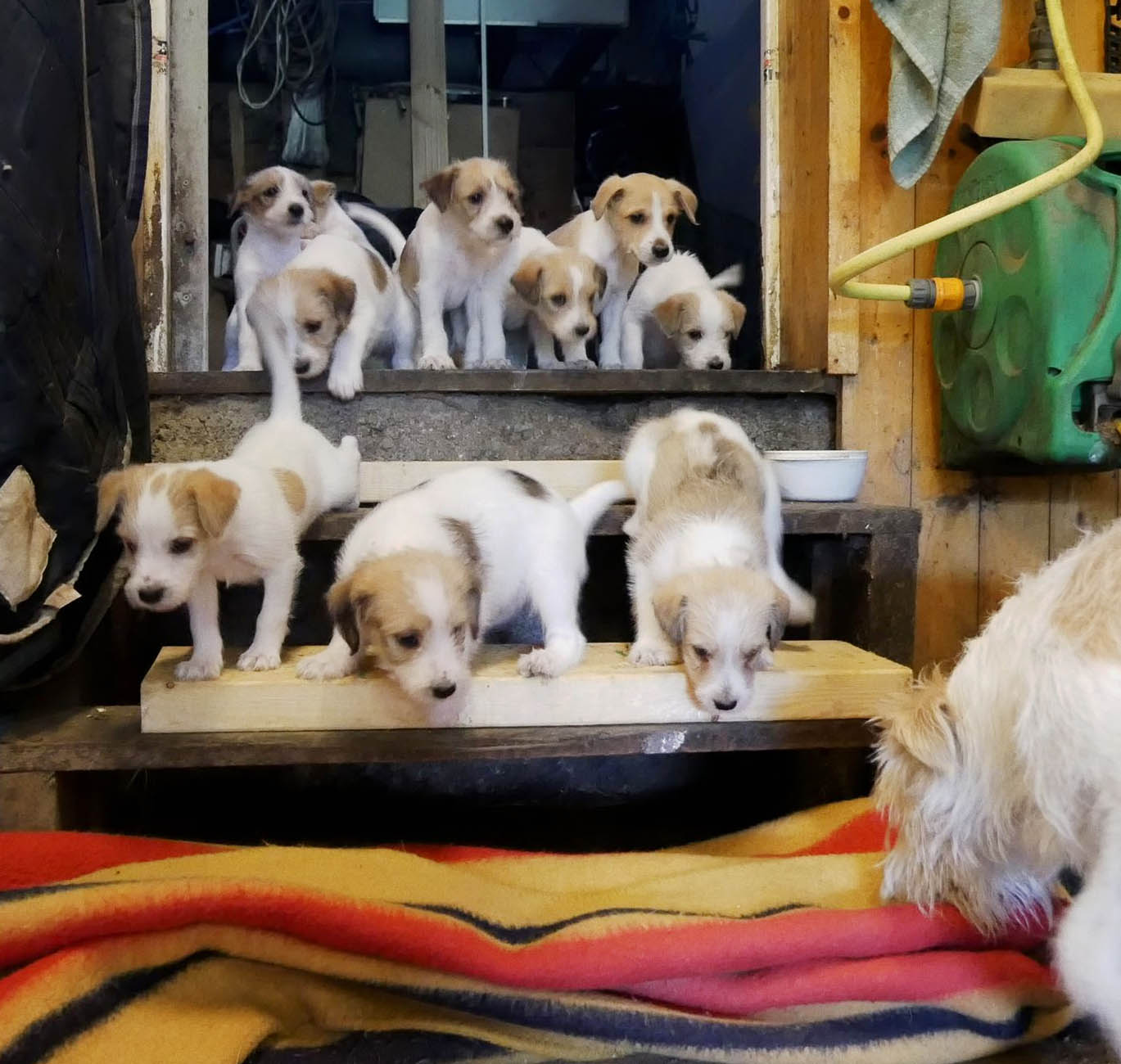 Bilder på ALLA 17 valparna i valpgården och i full fart ut från valprummet och mot valpgården