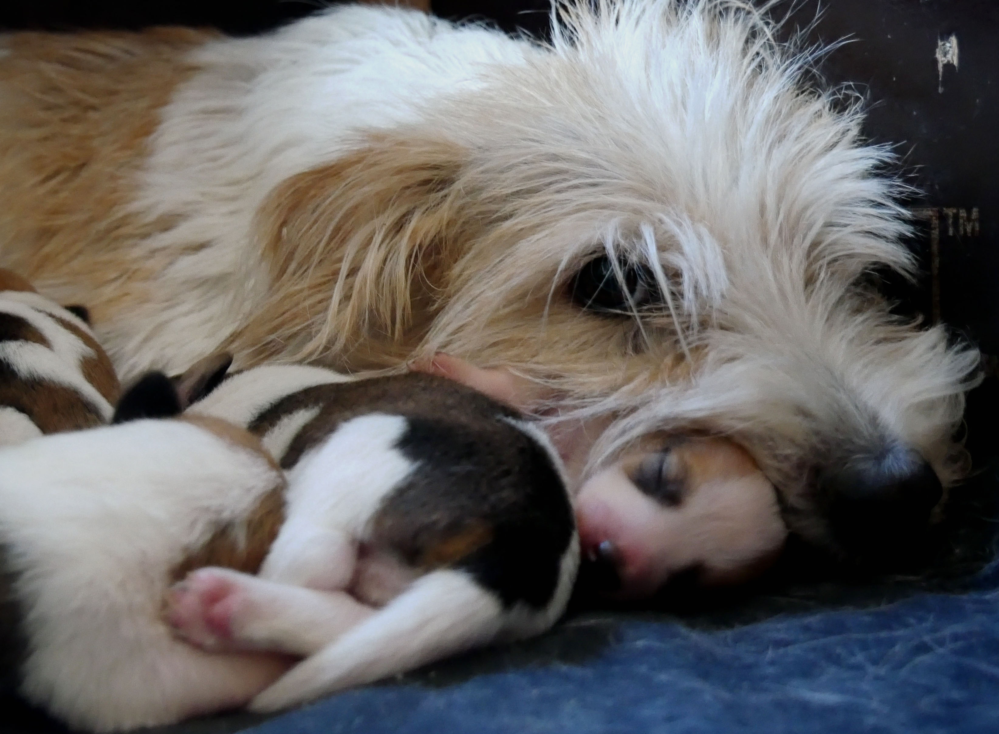Hennes valpar är ju lite äldre och har så smått börjat öppna ögonen